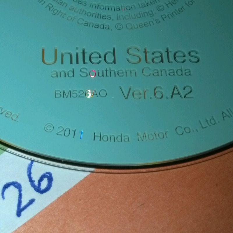 Mint condition 2012 map update navigation DVD for your Honda models listed below. This is the North America and Southern Canada map. The CD is an OEM disc from Honda, model BM526AO. Please check with Honda to make sure this works on your car before purchasing as returns have $8 restocking fee. This version must be equal or newer than the current version in your car or it will not work. Please make sure it is the same color as well. Please pay with paypal and I usually ship SAME DAY with delivery confirmation to track your order