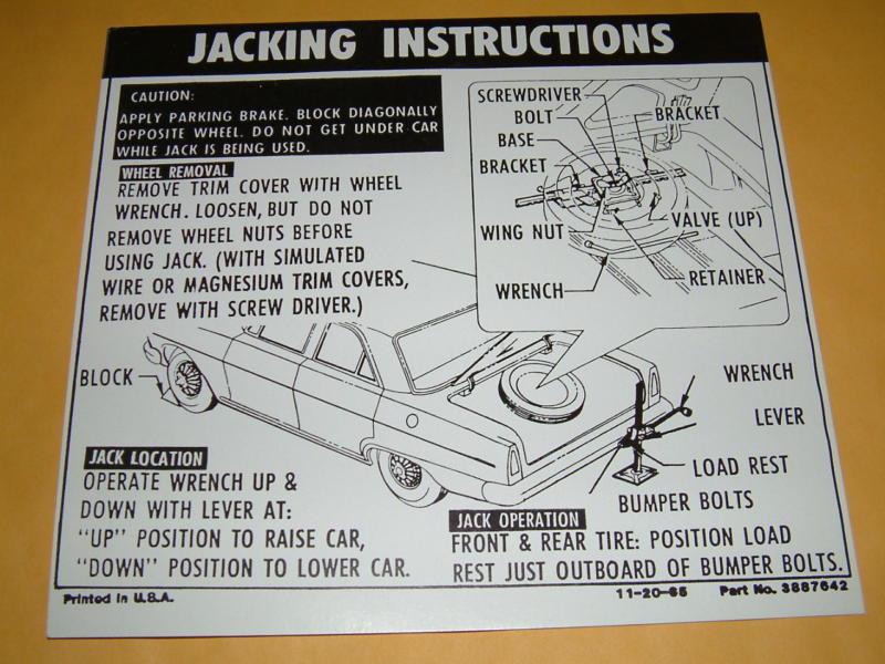 64 65 66 67 68 69 70 71 Nova Jacking Instruction Decal on 2040-parts.com