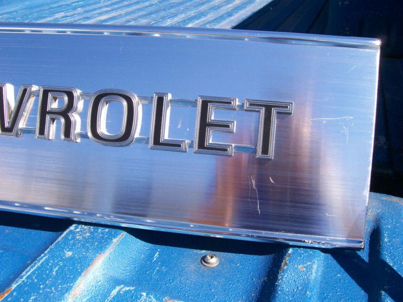 This auction is for a trim panel that came off of a 1978 chevy truck. The tailgate for this truck was taken off in 1979 when the owner of the truck took it off and slid a camper unit into the bed. The gate then sat off to the side for all of these years........... This trim panel does NOT have any dents in it. It does have some scratches that I hope that you can see in the pictures....... The shine that comes off of this panel is blinding! I still have spots in my eyes from the glare of the sun!.......... All of the paint is still there on the Chevrolet emblem and all of the mounting screws are present........This could use alittle bit of polish along the very bottom....... I do still have the tailgate that this panel came off of if someone or the buyer is interested in it also...........This is a NO RESERVE auction! Bid to win................. Buyer to pay all shipping within the lower 48 states............ Payment via paypal within 7 days of auctions end........... Email with questions.......... Thanks for looking.