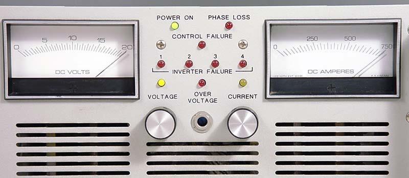 THIS FULLY REGULATED AND PRECISION POWER SUPPLY IS VASTLY SUPERIOR TO SIMPLE PLATING "RECTIFIERS" BECAUSE IT IS ACCURATELY CONTROLLABLE YIELDING VERY CONSISTENT RESULTS, AND IS THE IDEAL POWER SUPPLY FOR PLATING APPLICATIONS THAT REQUIRE VOLTAGES UP TO 20 VOLTS AND DRAW AS MUCH AS 750 AMPS.