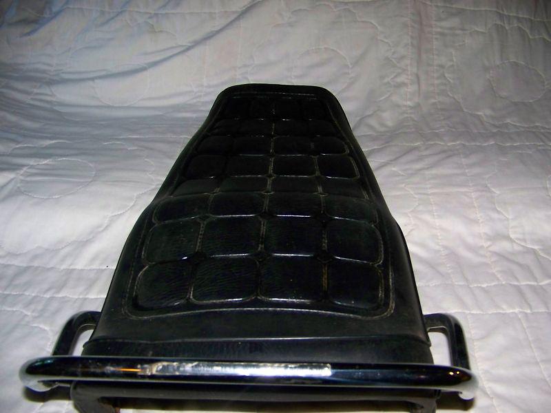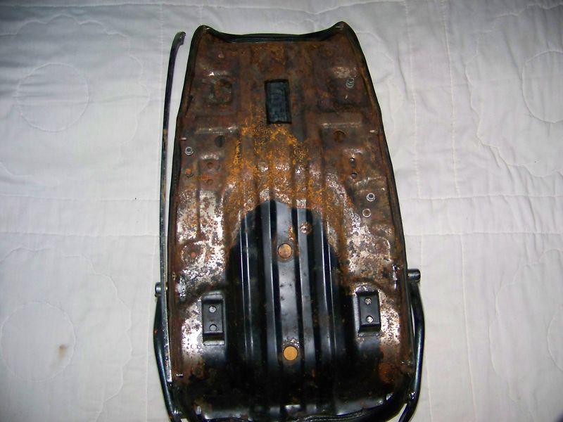 Up for your consideration is a OEM seat removed from a 1979 Suzuki GS850G with 5700 original miles.Seat is in very good condition. Original cover is very nice no rips or cuts, very little wear. Foam is nice and soft, very comfortable. Chrome grab bar is included in very good shape with original decal still intact. Trims on bottom of seat look good but have broken tabs, will need reattached. Seat pan is solid with original decal, does have surface rust(SEE PICS). Nice oem used seat, hard to find in this condition. Sold as is please ask questions before bidding. Thanks!