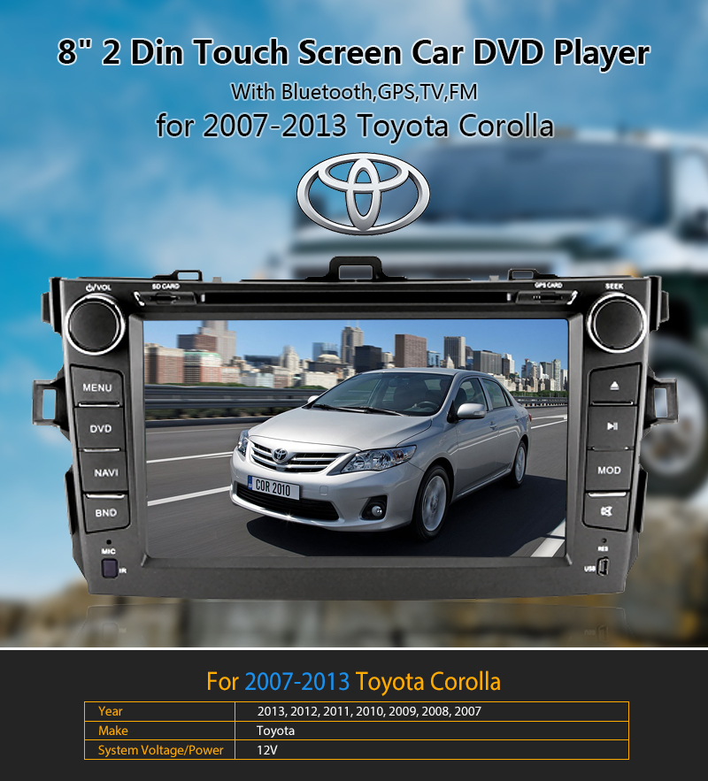 8 Inch Stereo Car Dvd Radio Gps Navi Multimedia Bt For Toyota Corolla 2007-2013 on 2040-parts.com