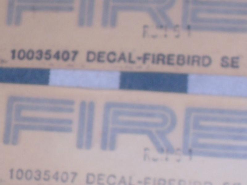 this is for the 82-92 firebird SE names. gm new items real clean and looks great. same size as originals. putting it on is easy and has the uv protection on it. black accents. really nice decals. 2 decals here will fit either side. i have not found these decals in reproduction