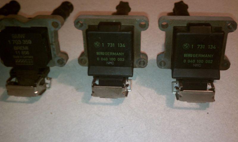 92 93 94 95 BMW 525I E34 IGNITION COILS All ignition coils are in good condition, and sold individually. Buy as many as you need. I have 5 available at this time. May fit other models. Be sure the part numbers in the pictures are compatibile with your motor. Part numbers are as follows 2 are 1 731 134 and 3 are 1 703 359 Satisfaction Policy: 7 day money back guarantee offered for any item found to be defective, or does not fit the vehicles listed. Buyer pays return shipping, and items must be returned with insurance and in the same condition as originally shipped out. Items damaged in shipping will be taken care of by the shippers insurance. Return Policy: No refunds if you no longer need the item, if you purchased the wrong part, or other reason not listed in the Satisfaction Policy. Feedback Policy: Excellent feedback since 2004. Feedback is always left after each transaction is completed and you leave appropriate feedback. Shipping Policy: Shipping to the continental 48 United States only. No shipping to Alaska, Hawaii, Puerto Rico or any other country. Insurance, & boxing expenses are generally included on all auctions as a part of the overall price.
