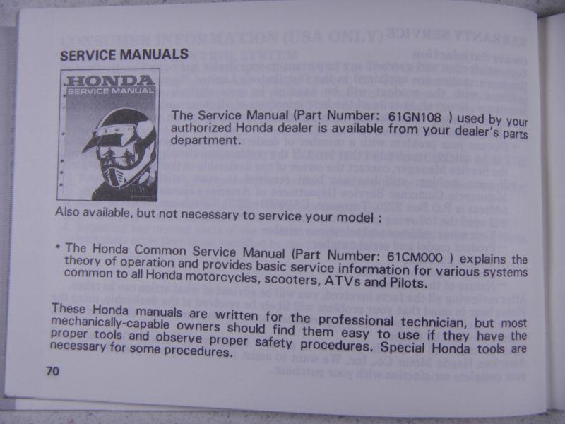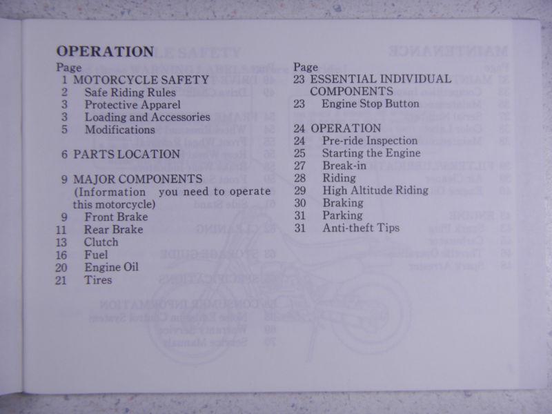 THIS ITEM IS: 1993 HONDA XR100R ORIGINAL NOS OEM OWNER'S MANUAL