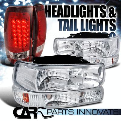 99-02 Silverado Fleetside Chrome Headlights+bumper Lamps+red Led Tail Lights on 2040-parts.com