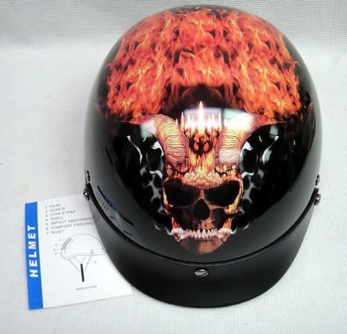 New outlaw gloss black with flaming horned skull half helmet sz large xu211 dot(US $19.99)