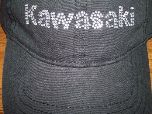 Kawasaki baseball cap trucker hat snap back adj. washed black bling rinestones(US $22.09)
