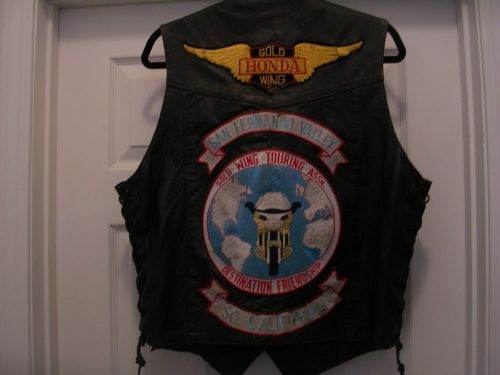 Vintage mens blk leather motorcycle biker vest laced sides with patches sz 44