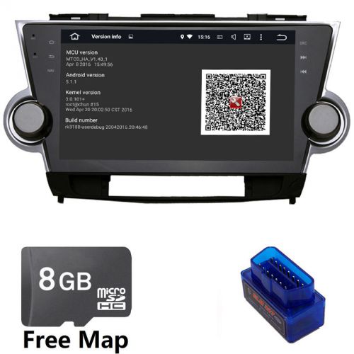 Android 5.1 stereo gps navi of toyota highlander video gps map free obd2 scanner(US $335.00)