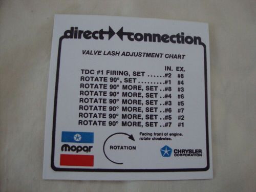 Mopar performance p4007707 solid liftercold valve lash setting chart v-8 engines(US $4.00)
