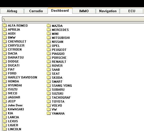 This Software is Full version for Odometer RadioCar Airbag Navigator It is a database application specially designed for dashboard recalibration ( Mileage / Kilometer Correction in BSI & ECU or Repairs ) and car-radio unlocking. This program also allows you to create your own database or simply use an existing. It also includes own script interpreter and file commander.