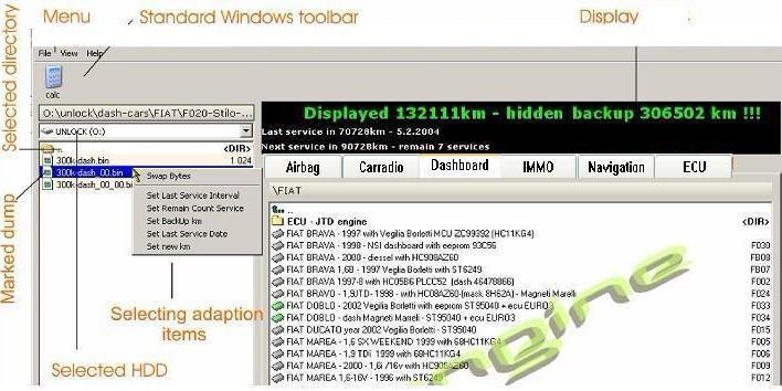 The program intended to correct car odometers, radios, navigation, airbags, converting the speedometer reading with photos.