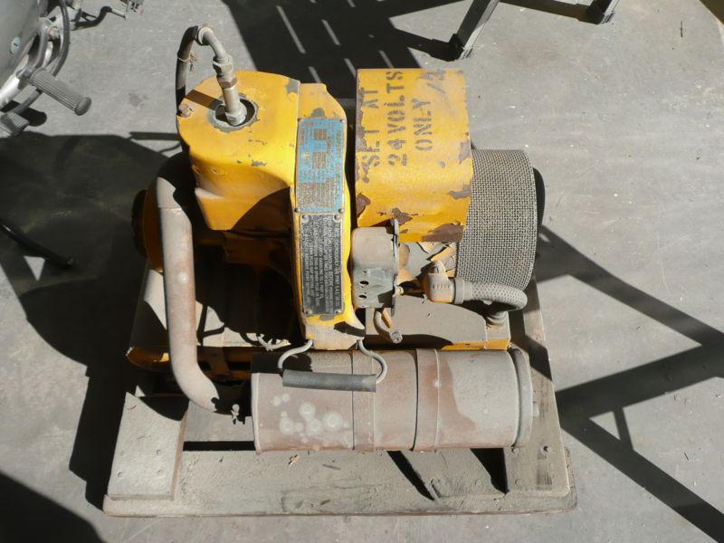 This is a 24v Aircraft APU from the 1950s era. It was used by a local operator who had a spray fleet of TBMs. Has been sitting for several years but the engine which is a 2 cycle turns freely and a few drops of gas in the plug hole will bring it to life. Gas tank and fuel system would need cleaning to make it work. I do not know the condition of the generator. It would be a restoration project if you want to use it or could sit in a museum. Tag on the motor indicates it was the property of the RCAF.