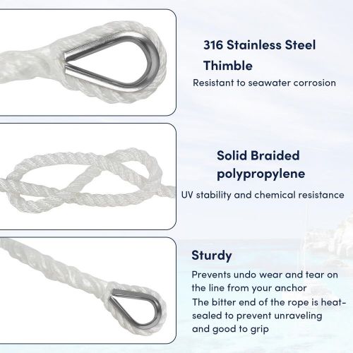 Anchor Rope 100 Ft X 3/8 Inch Polypropylene Rope 3 Strand Twisted Anchor Line... on 2040-parts.com