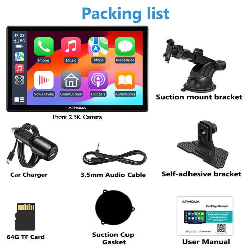 Aphqua 9" ips screen 2.5k dash cam bluetooth wireless apple carplay android auto(US $152.99)
