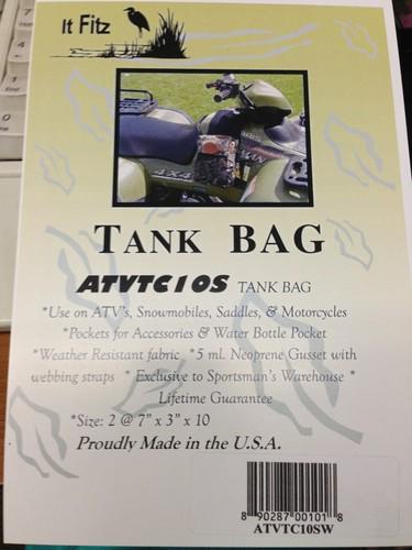 Use on ATV's, snowmobiles, saddle horns, & motorcycles. Pockets for accessories & water bottle holder. Camouflage water resistant fabric, neoprene gusset. Made in USA