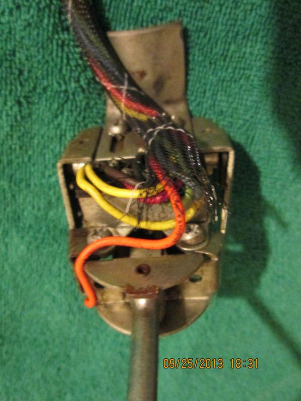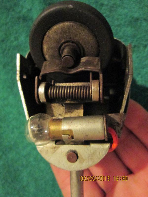 What a cool old signal switch ! Still in working condition,,Mount on steering column so the rubber wheel rides on the steering wheel hub for self cancelling turn signals,,",Gotta be an old car or truck" , Great piece for that old hot rod or restoration project or as a collector piece,,,