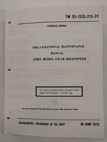 Bell Army Model Uh-1b Helicopter Organizational Maintenance Manual-copy on 2040-parts.com