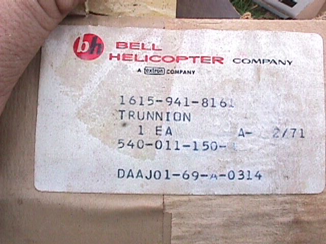 4056. NOS in original box 1971 Bell Main Rotor Trunnion. No paper other than box and label, I believe these are NOS made for US military stock. Excellent condition as seen in photos.