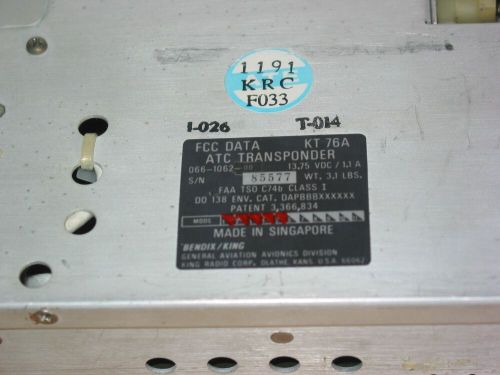 Bendix king kt-76a transponder !!! p/n 066-1062-00 !!! kt 76 a !!!(US $59.00)