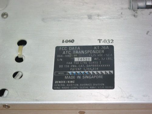 Bendix king kt-76a transponder !!! p/n 066-1062-00 !!! kt 76 a !!!(US $59.00)