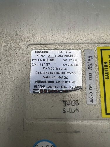 Bendix/king kt76c transponder p/n 066-01156-0101 with faa form 8130-3(US $1,095.00)