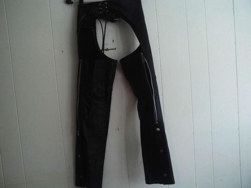 Black leather chaps. NWOT They are supposed to be adult but look really small to me.