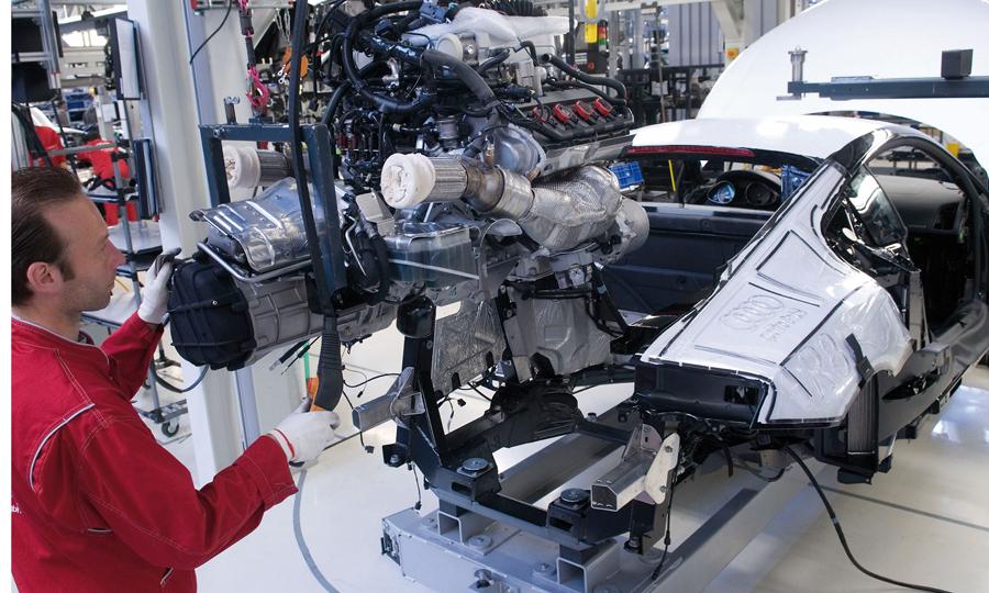 The National Geographic Channel, available on cable and satellite TV systems, tells all about the Audi R8 on an episode of Ultimate Factories that airs at 10 p.m. Eastern. The show takes views into Audi's assembly plant in Neckarsulm, Germany, where workers build up the R8's aluminum spaceframe by hand.
