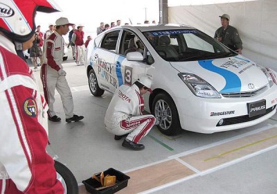 The Prius Cup has a service and race portion. During the service leg, teams are clocked on how fast and accurately they service their car, from checking the engine to rotating the tires.