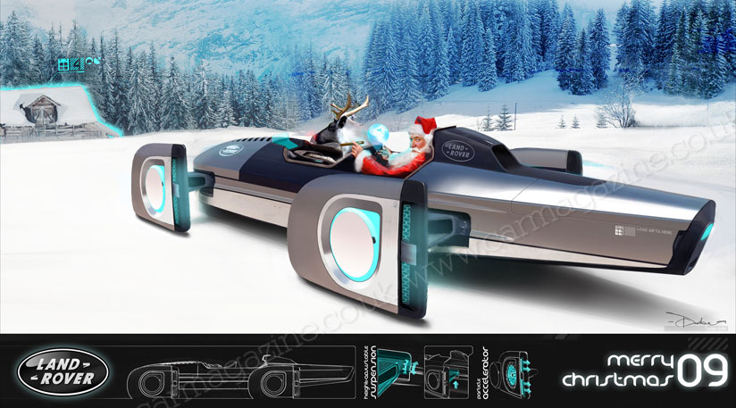 Today it’s the turn of Land Rover to show off its version of Santa’s sleigh. Father Christmas’s go-anywhere 4x4 delivery wagon was sketched out exclusively for CAR Online – as part of our Christmas 2009 special feature.
