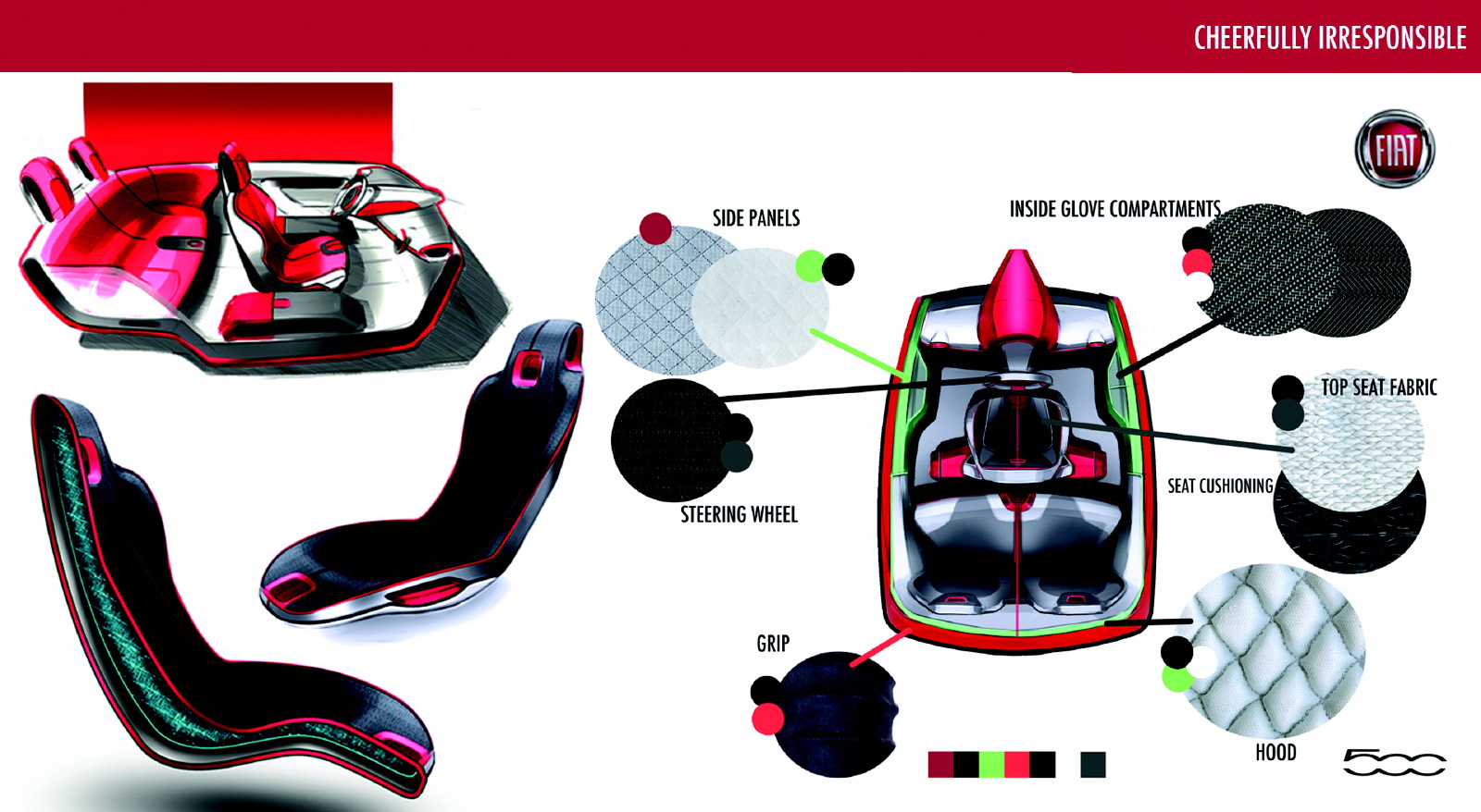 The winning Fiat 500 projects were the 500 ‘Spresso' and 500 ‘Cheerfully Irresponsible', while the winning Panda projects were the Panda ‘Hug' and Panda ‘Roomy'.
