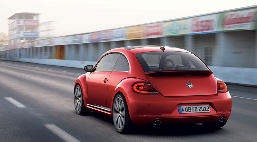 The flattening of the New Beetle's curves continues in profile and at the rear we see a standard integrated spoiler below the rear window. More complex tail-light clusters fit with the current corporate style book, while overall the Beetle is a more aggressive, masculine design.
