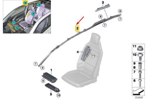 Bmw I3 I01 Srs System For Roof And Head Right 72127406506 7406506 New Original- on 2040-parts.com