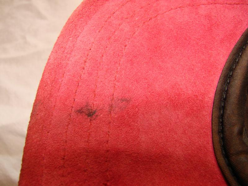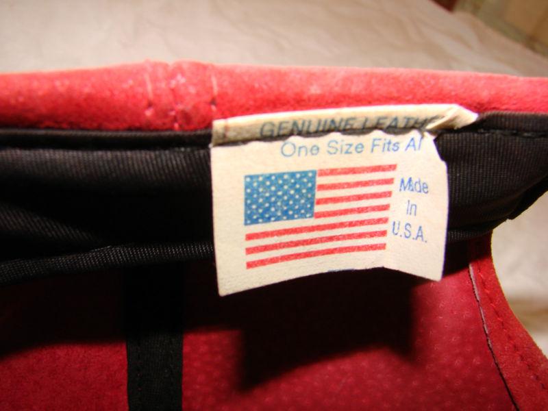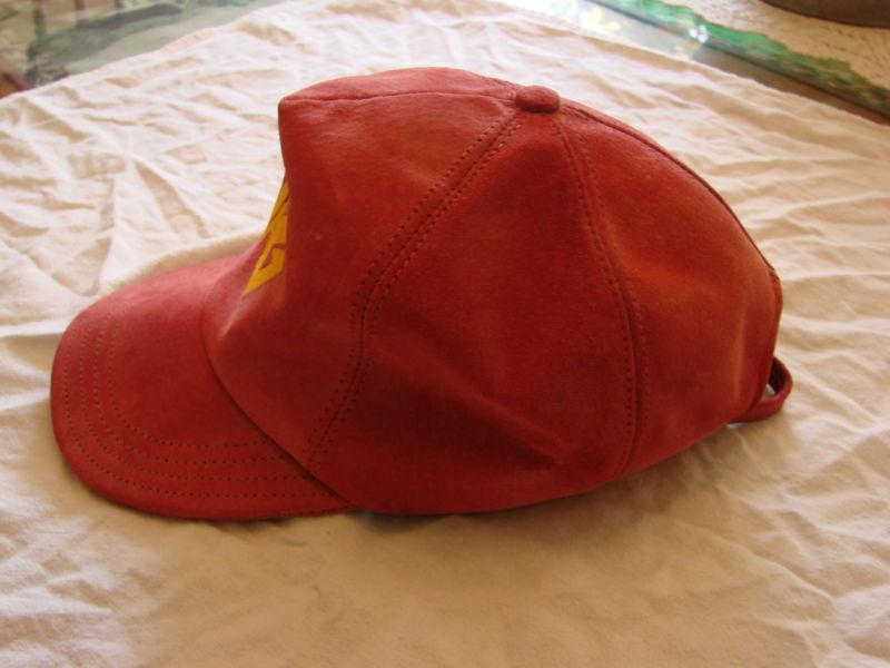 This is a Made in the USA BMW K1 baseball type hat. It is made of high grade cowhide leather and very thick. It has a suede finish on it. There are some stains on it please check pictures but otherwise in very good condition. You may use a stain remover or leather cleaner solution to remove but I will let buyer do that. It was given to me by BMW motorcycle technician who use to own a K1 himself as well as myself. Please email if you have any questions thanks and happy bidding!!!!