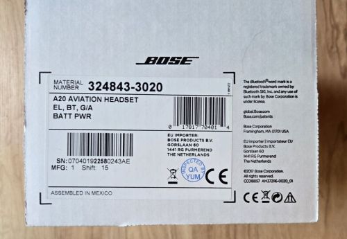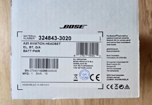 Bose a20 aviation headset with bluetooth & dual plug cable - black(US $925.00)