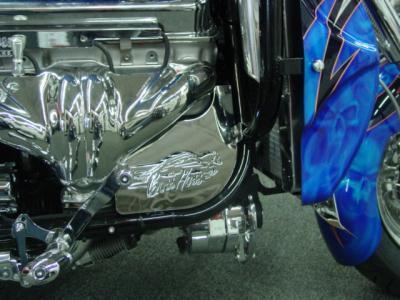 Brand new pair of BOSS HOSS chrome plated and engraved frame covers. These classy details cover the lower front frame and the alternator on one side and the water pump on the other. Fits 2000 and newer 350 engines. Don't miss out!