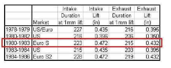 See table for cam specifics.