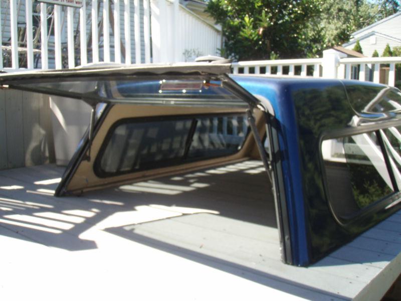 This cap is painted blue and is for a small size pick up truck. It has sliding side windows and the back window lifts open. We have the keys for it. It is in good condition. It will be great for the winter weather coming up! If it is not your color, you can always get it painted! E-mail with any questions.