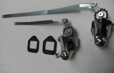This auction is for a brand new set of Wiper Tower Assemblys. This includes both left & right hand towers and is designed to fit your 1937 1938 1939 Ford Convertible or Station Wagon. These show quality wiper linkages are die cast and triple chrome plated. Don't worry any longer about broken chains, this set has a heavy duty design drive chain. Includes necessary mounting hardware. This auction also includes a set of Wiper Tower pads needed to seal wipers to cowl. These are molded rubber pads with lip. Don't miss out on this great set!