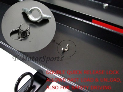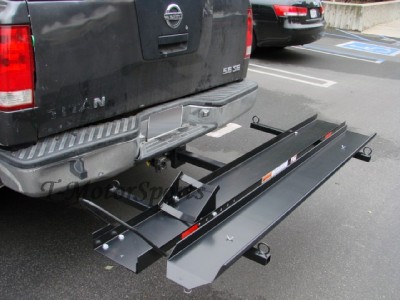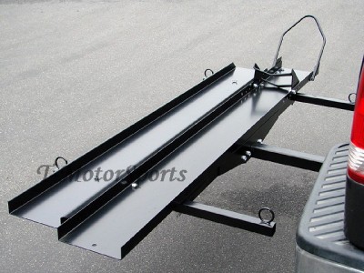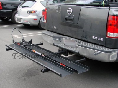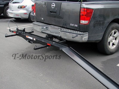 This sport bike hauler mounts to your vehicles 2" receiver hitch for transporting just about any type of motorcycle up to a 600 lbs! Designed with an integrated chock for wheel stability and to aid in securing the motorcycle! Includes an anti-tilt locking device to reduce carrier wobble!