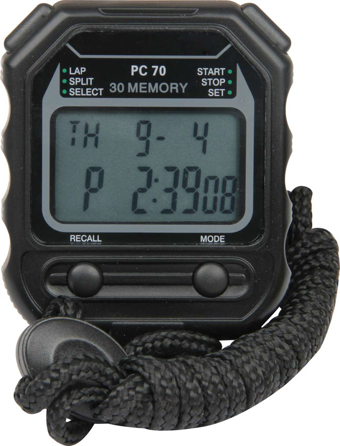 Stopwatch - Digital - 20 Lap Memory - Multi-Mode - Black - Each
