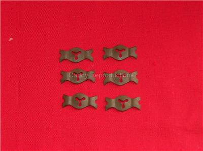 Here is a Set of 6 New Door Armrest Clips for your 1954 1955 or 1956 Cadillac. These are to the Original Specs. If you are missing all or any of your clips or yours are to rusty to put on your restored Caddy, These are what you want.