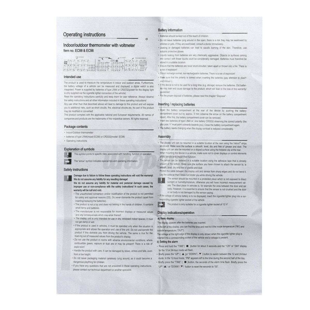 1 x Indoor/Outdoor temperature