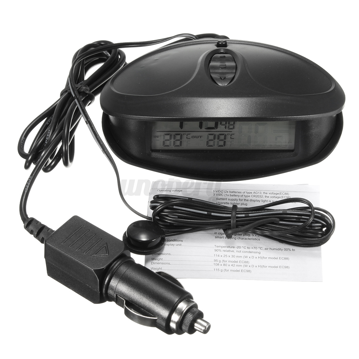 Cable Length: Outdoor sensor - approx. 145cm / Cigarette Lighter Plug - approx. 150cm