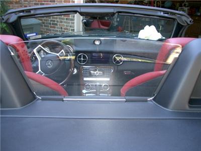 Although your supposed to wait 24 hours before you drive top down …patience is not one of my virtues so I gave it a test run. Top down it is at a minimum as good as the MBZ wind screen. I personally think it does an even better job and cuts out much more of the buffeting then the MBZ net one. But the main thing is I could see behind me without any problem . With the top up it was perfect. I could see out the rear and it let more light in then before. It really opened up the cockpit.