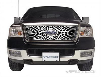 Grille Insert, Main Grille, Billet Aluminum, Polished, Liquid SpiderWeb, Ford, Pickup, Each