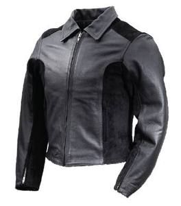 Heavy-duty cowhide leather and suede with princess cut for women. Removable CE armor in the elbows and shoulders with soft back pad. Two external zippered hand pockets and one internal chest pocket. Snap down collar and zippered cuffs for easy on/off use. Embossed Suzuki Boulevard logo on the upper back and sewn on black rubber Suzuki Boulevard logo at waist.