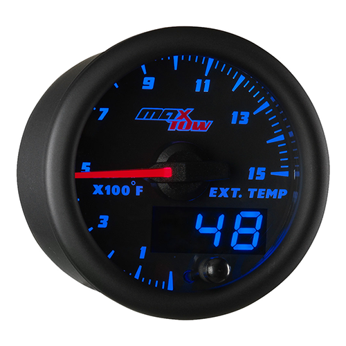 You asked for it and we listened! MaxTow’s Black & Blue Double Vision™ Gauge Series features a black gauge face with dual readout displays which include an analog reading with an illuminated red needle and a quick glance digital display; both of which are illuminated by ultra-bright blue LED lighting. Each 2 1/16” (52mm) gauge is driven by stepper motor technology which allows for exceptionally smooth needle movement that keeps up with the changing statistics of the engine. This diesel pyrometer gauge also features daytime and nighttime dimming modes with 3 customizable settings for each mode. This feature offers multiple dimming options allowing you to set your preference when hitting the road during the day or at night! The included brightness recall function remembers the previous brightness setting that was enabled before powering the truck down so you won’t have to reset it every time you turn the truck on!