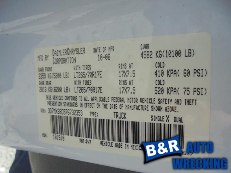 ![]() ![]() ![]() ![]() ![]() ![]() Click HERE to see all available parts from this 2007 RAM3500